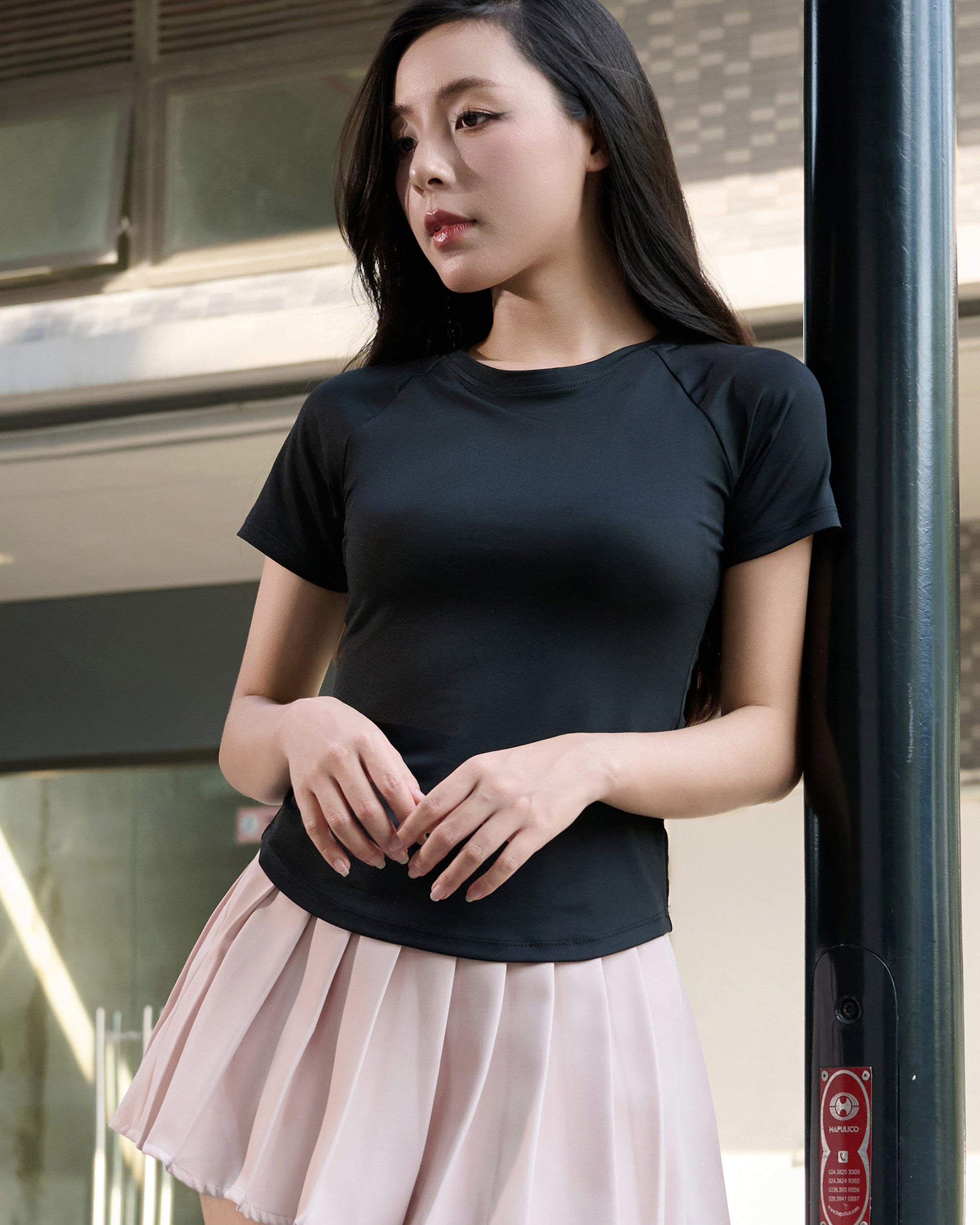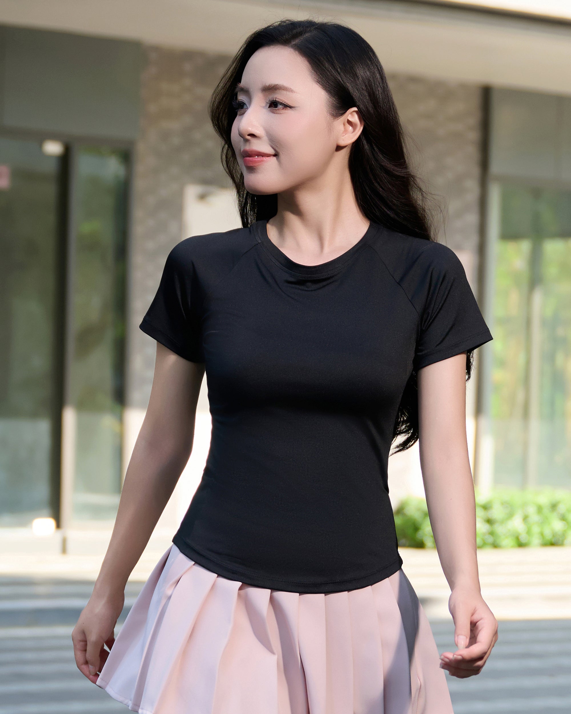 Chất liệu co giãn 4 chiều: Giúp áo ôm nhẹ cơ thể nhưng không gò bó, tăng sự thoải mái tối đa khi mặc. Thiết kế đuôi tôm cách điệu: Mang đến vẻ mềm mại, tinh tế, tôn dáng nhẹ nhàng và tạo điểm nhấn khác biệt. Tay áo raglan: Tăng cường sự linh hoạt cho chuyển động vai, đồng thời mang lại cảm giác năng động, trẻ trung.