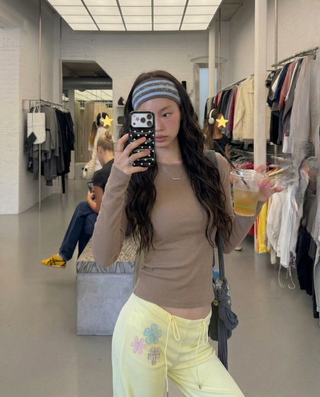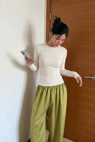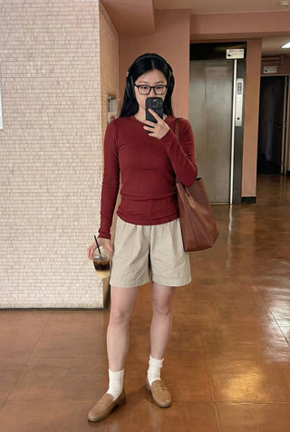 Mặc chiếc áo tăm này vào là tự nhiên thấy lòng nhẹ nhàng, cả người như được ôm ấp bởi một đám mây mềm mại, ấm vừa đủ mà chẳng hề bí. Vải co giãn vuốt ve từng cử động, tay dài dịu dàng chạm vào da, cổ tròn lặng lẽ làm nổi bật khuôn mặt mình xinh hơn hẳn. Cả ngày dài dù bận rộn đến mấy cũng thấy dễ chịu, tự tin và đáng yêu lạ.