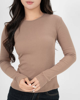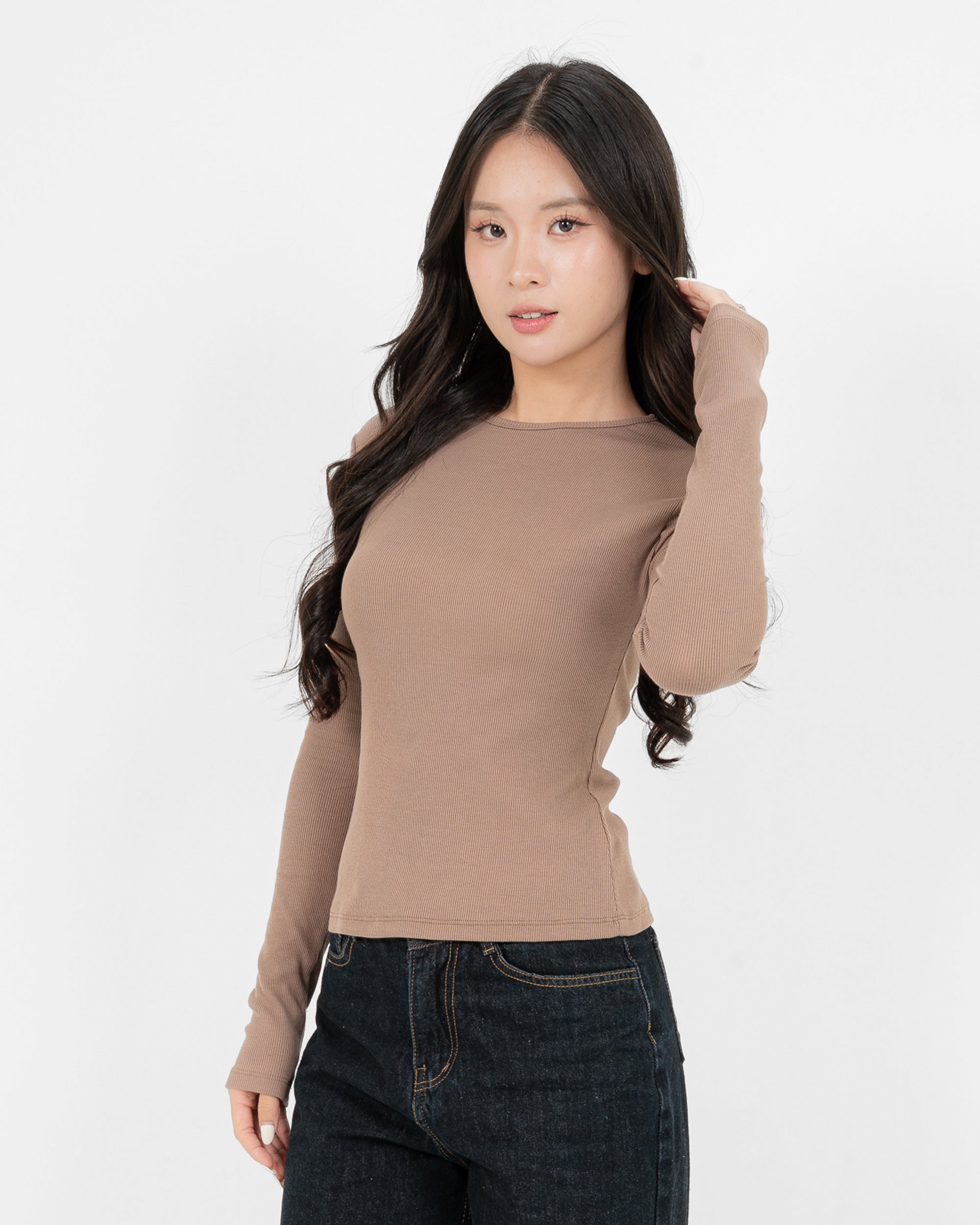 Áo Thun Tăm Nữ Dài Tay Co Giãn Cổ Tròn