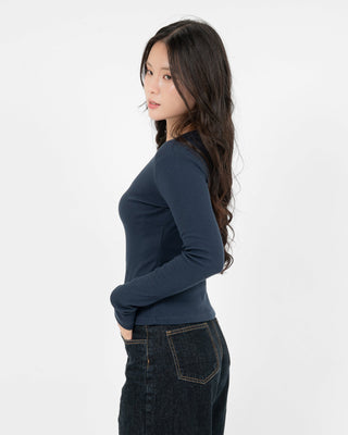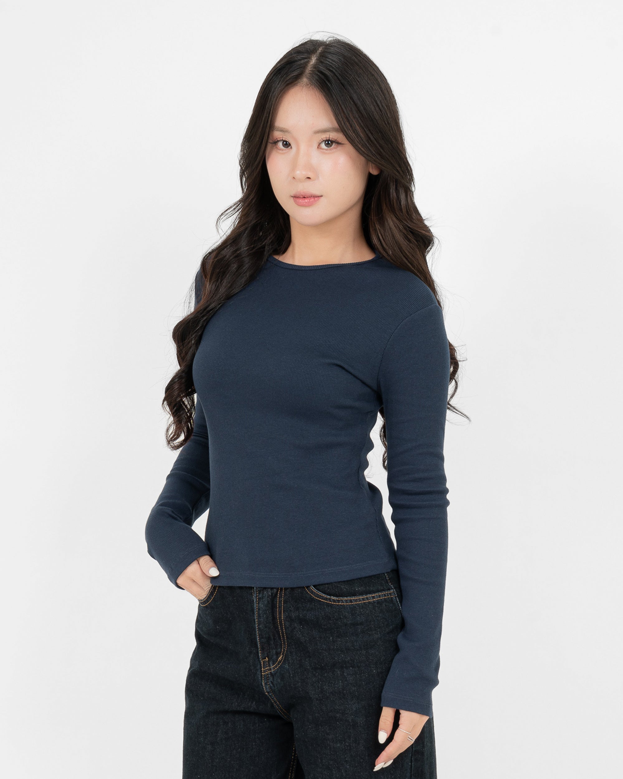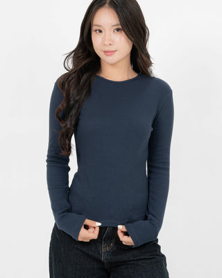 Cotton/Polyester/SpandexÁo Thun Tăm Nữ Dài Tay Co Giãn Cổ Tròn