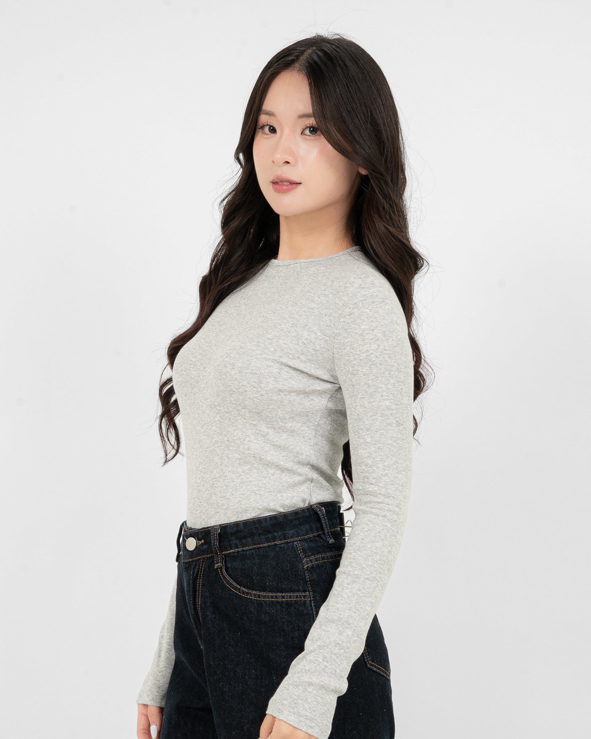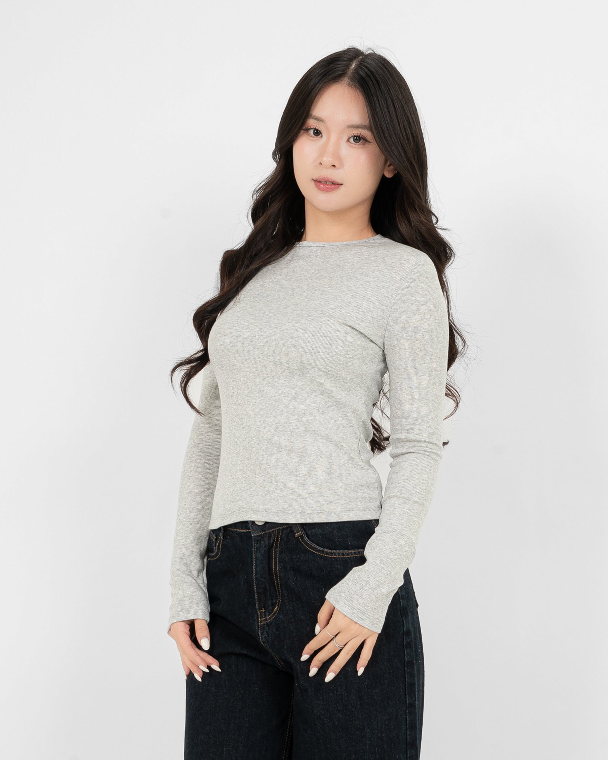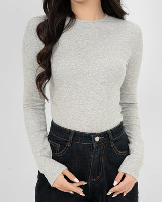 Áo Thun Tăm Nữ Dài Tay Co Giãn Cổ Tròn
