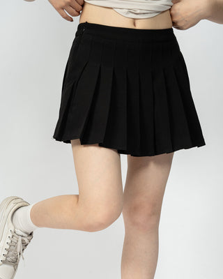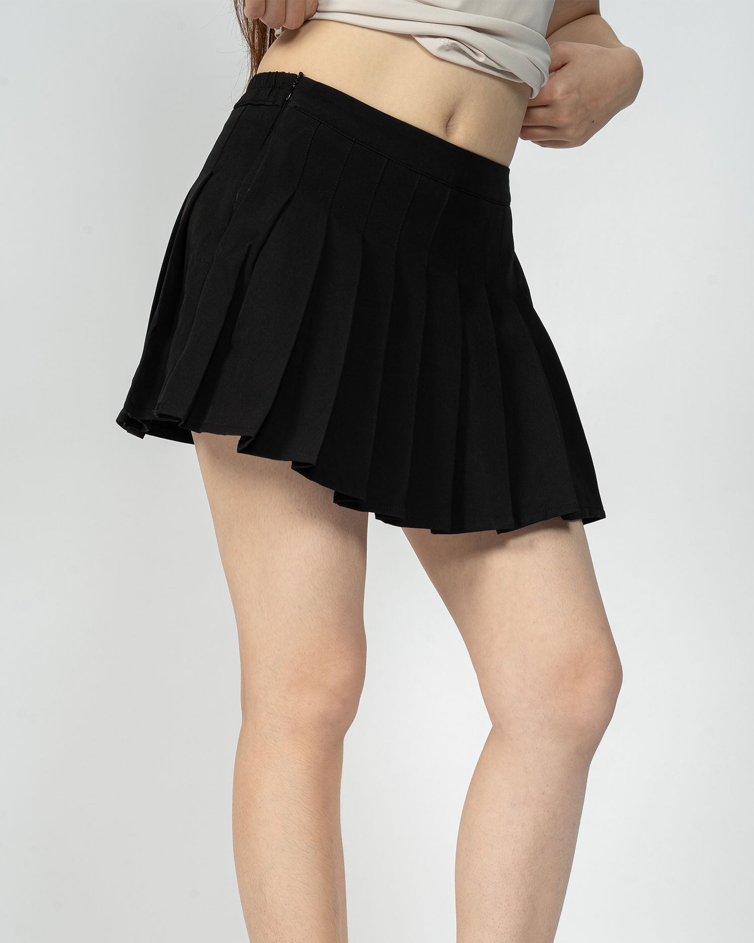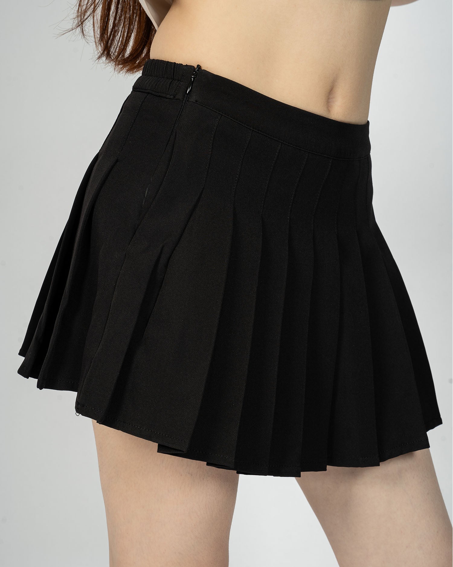 "Đa năng" là từ để mô tả chân váy xếp ly này: Vải co giãn, hút ẩm tốt / Có 2 túi như túi quần (nhưng không phá đi sự chỉnh chu của các ly váy) / Có quần bảo hộ kín đáo / Lưng chun phía sau giúp nới thêm bụng, nhưng cạp váy phía trước phẳng để vẫn "ra chất" / Khóa kéo bên hông tiện lợi.