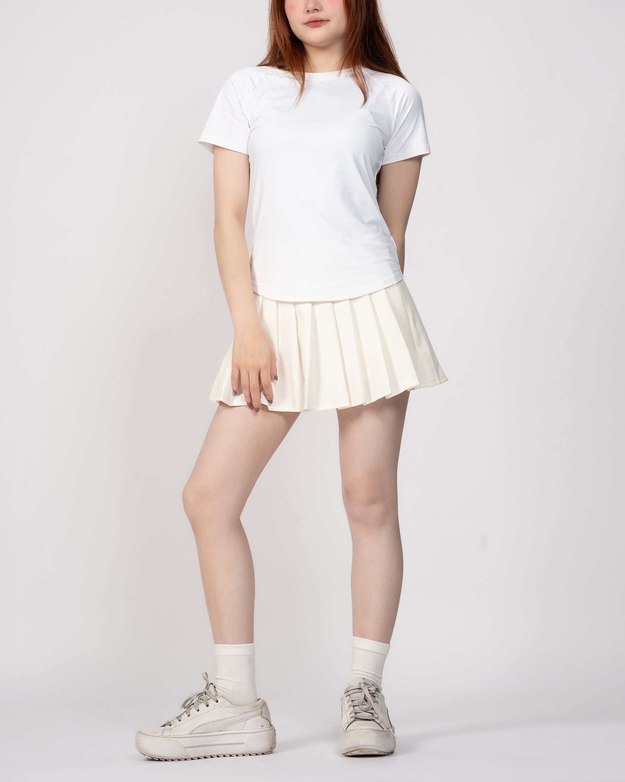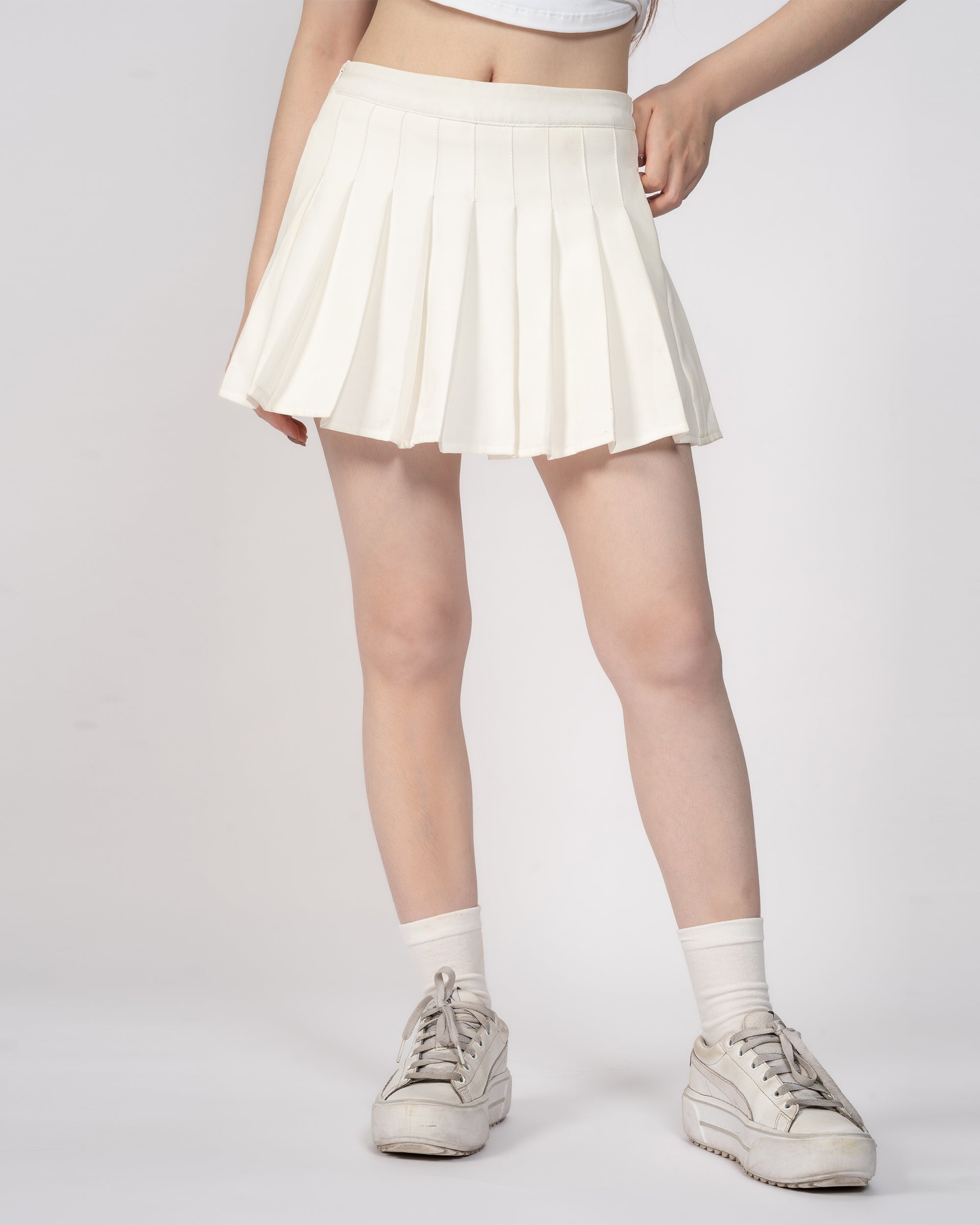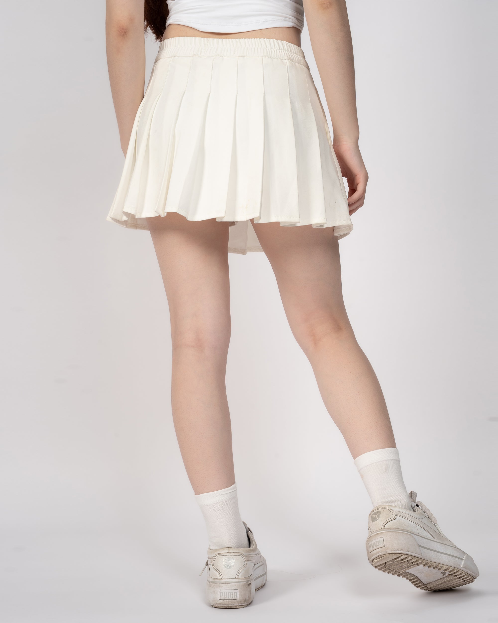 "Đa năng" là từ để mô tả chân váy xếp ly này: Vải co giãn, hút ẩm tốt / Có 2 túi như túi quần (nhưng không phá đi sự chỉnh chu của các ly váy) / Có quần bảo hộ kín đáo / Lưng chun phía sau giúp nới thêm bụng, nhưng cạp váy phía trước phẳng để vẫn "ra chất" / Khóa kéo bên hông tiện lợi.