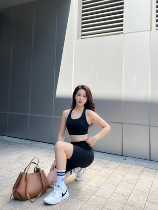 • Hỗ-Trợ-Vừa (Medium Support): Vải dày dặn hơn, có độ siết vừa phải, giữ 'mọi thứ' không xô lệch, 'tôn dáng' nhất vì có hiệu ứng đẩy các số đo đầy đặn hơn. Phù hợp Yoga, Gym, miễn cưỡng mặc hàng ngày vẫn được.