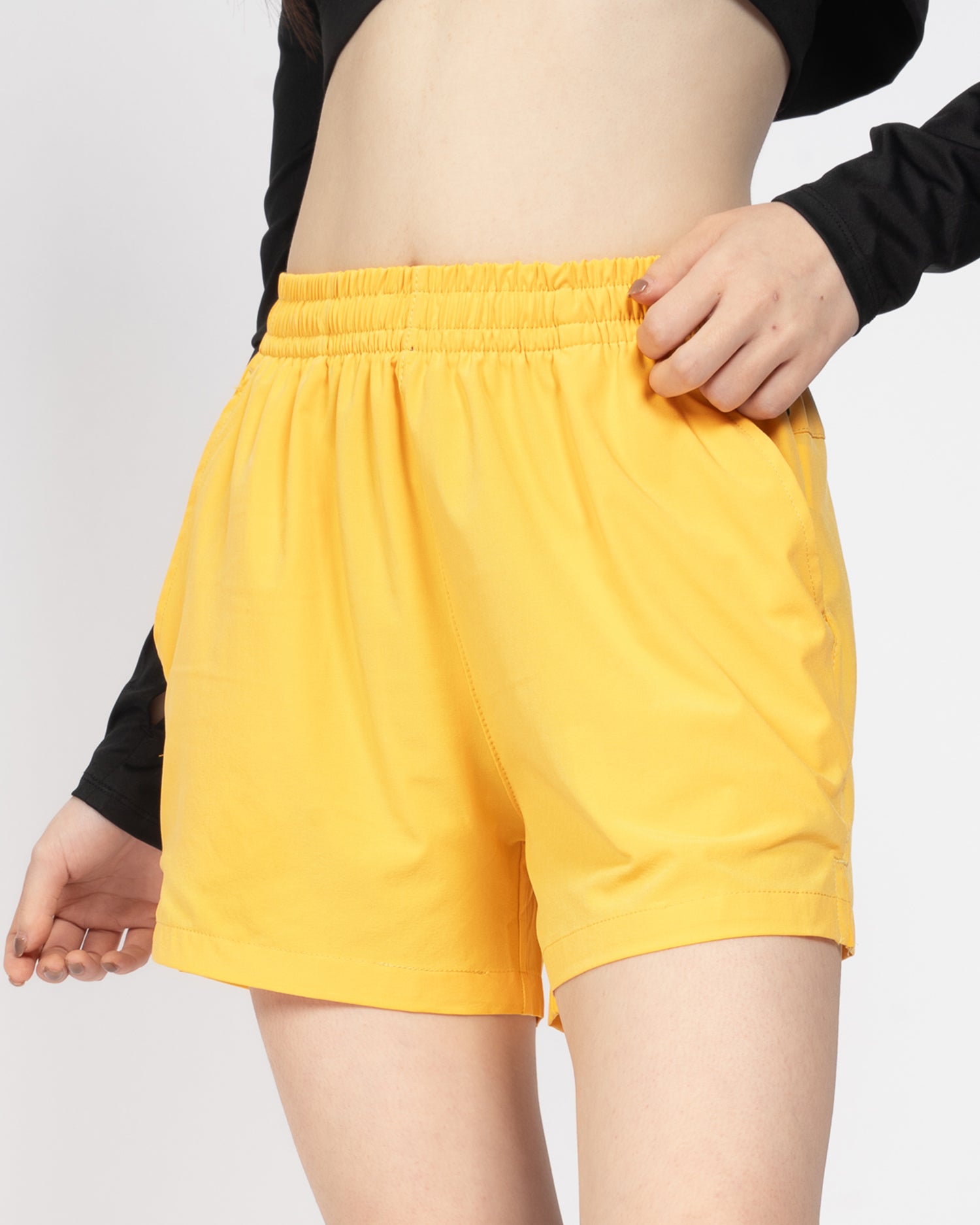 Quần short cạp chun nữ mang đến sự thoải mái tối đa với chất liệu co giãn, thoáng mát, thấm mồ hôi và khô nhanh, lý tưởng cho mọi hoạt động từ đi chơi đến tập luyện. Thiết kế ngắn gọn với đường viền góc cạnh cho phép di chuyển linh hoạt, cạp chun bên trong cùng dây rút điều chỉnh hoàn hảo và túi khóa giọt lệ tiện lợi, dễ phối với áo thun hay crop top.