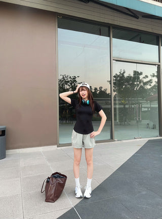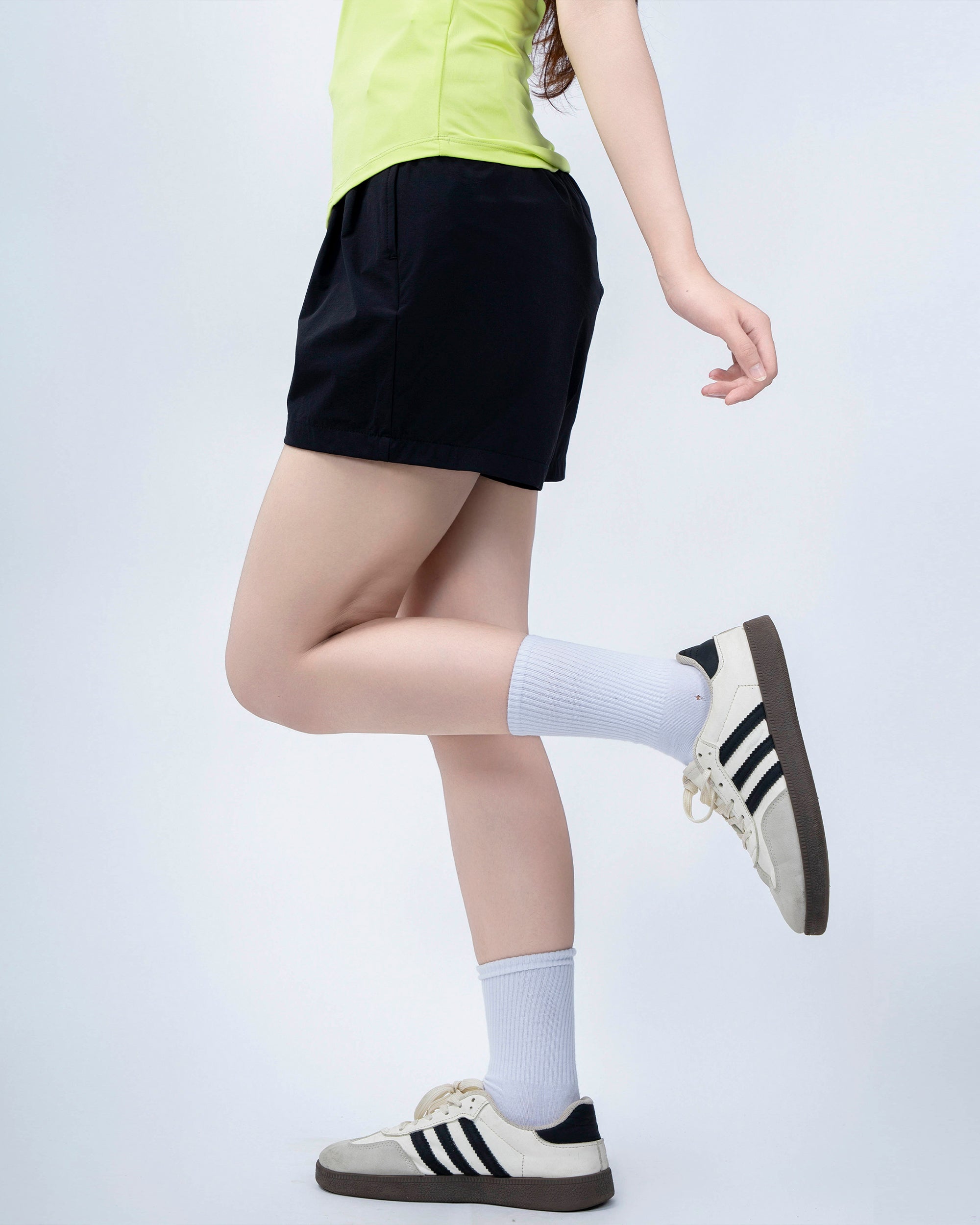 Two-tuck (hai ly) tăng tính kiểu cách. Đỉa quần (belt loop) để đeo dây lưng khi sơ vin với áo có cổ. Lưng chun để mặc thoải mái khi không sơ vin. Chất vải co giãn, trượt nước nhẹ tăng tính linh hoạt.